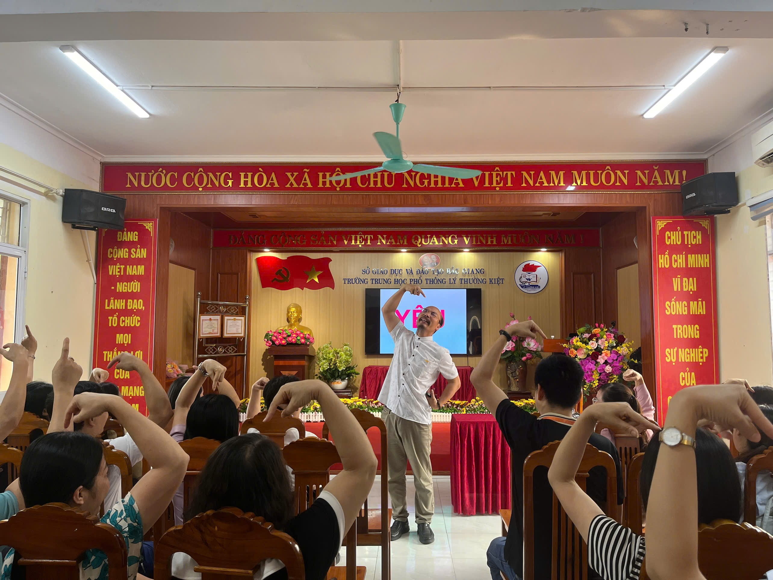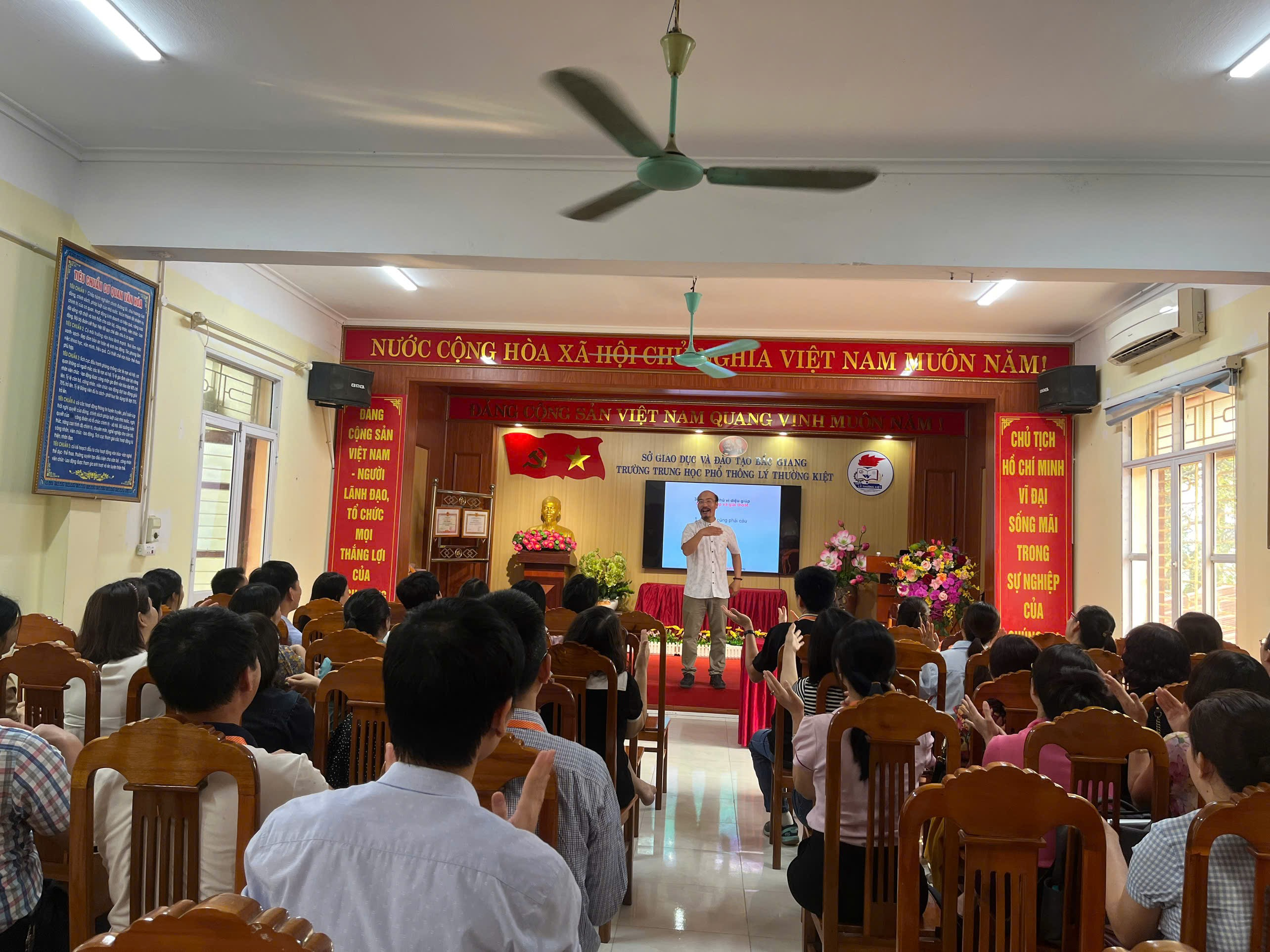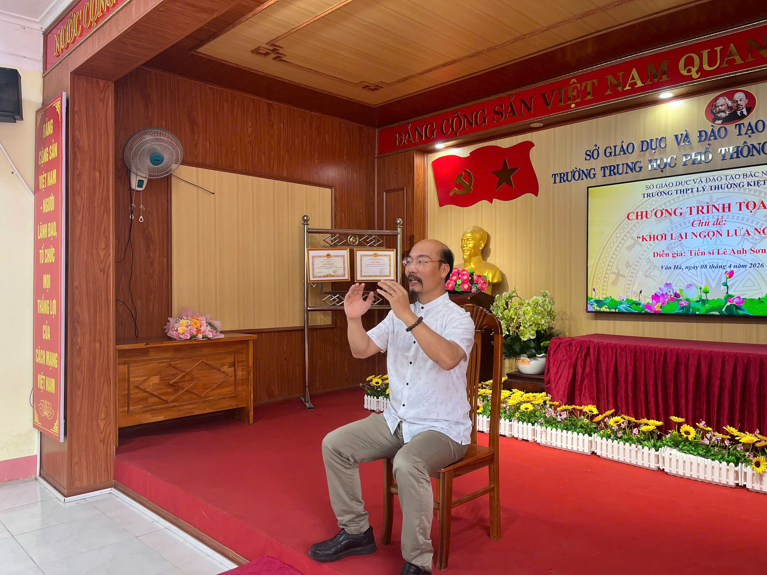 Trong không khí ấm áp và đầy cảm hứng, chiều 08/4/2026 chương trình tọa đàm “Khơi lại ngọn lửa nghề” do Tiến sĩ Lê Anh Sơn trực tiếp chia sẻ đã diễn ra tại trường THPT Lý Thường Kiệt số 1 thu hút sự tham gia đông đủ của các thầy cô giáo. Buổi tọa đàm không chỉ là dịp để lắng nghe, mà còn là hành trình nhìn lại chính mình – để mỗi nhà giáo tự hỏi, tự chiêm nghiệm và tìm lại ngọn lửa đam mê với nghề.