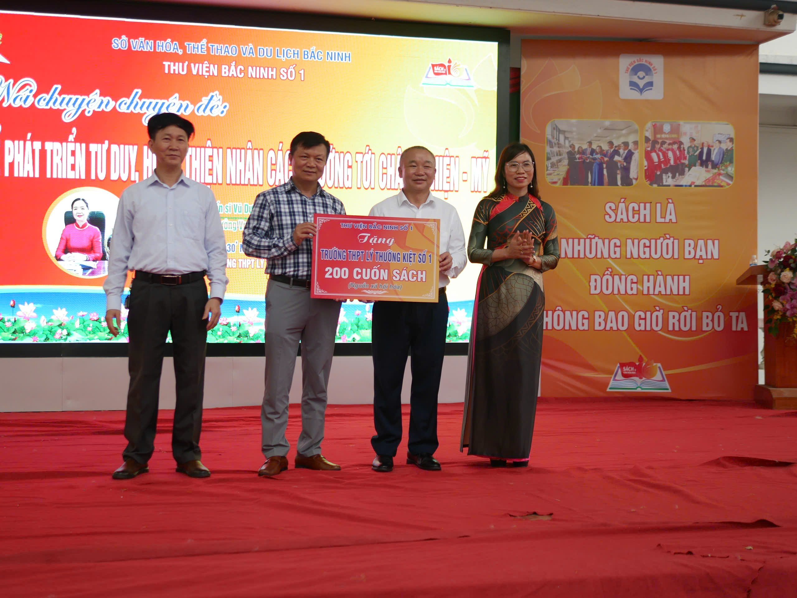 Tại chương trình, Tiến sĩ Vũ Dương Thúy Ngà đã trao tặng nhiều đầu sách ý nghĩa cho thư viện nhà trường, góp phần bổ sung nguồn học liệu phục vụ dạy và học. Đồng thời, Thư viện Bắc Ninh số 1 đã trao tặng nhà trường 200 cuốn sách với nội dung thiết thực, phù hợp với học sinh, góp phần làm phong phú nguồn tài liệu và thúc đẩy phong trào đọc sách trong nhà trường.