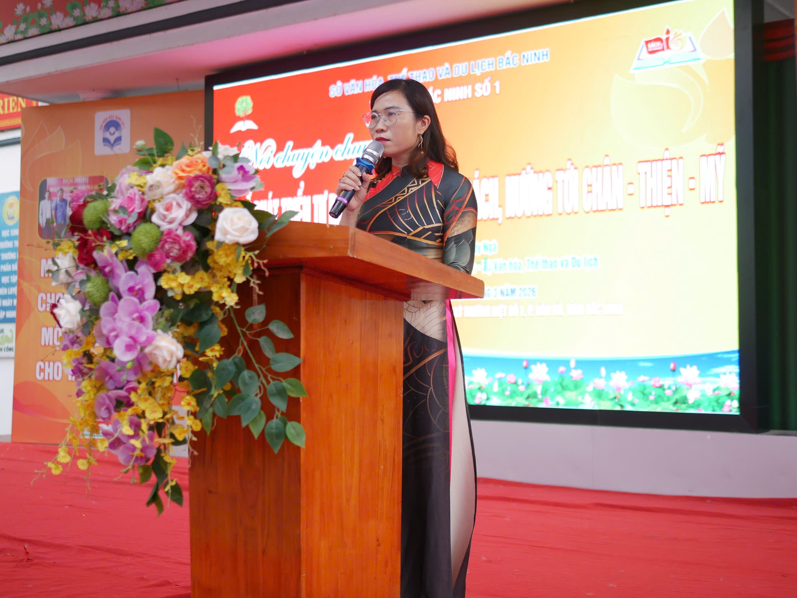 Cô Lê Thị Thái - Phó Bí thư Chi bộ, Phó Hiệu trưởng nhà trường phát động Cuộc thi “Đại sứ Văn hóa đọc năm 2026”.