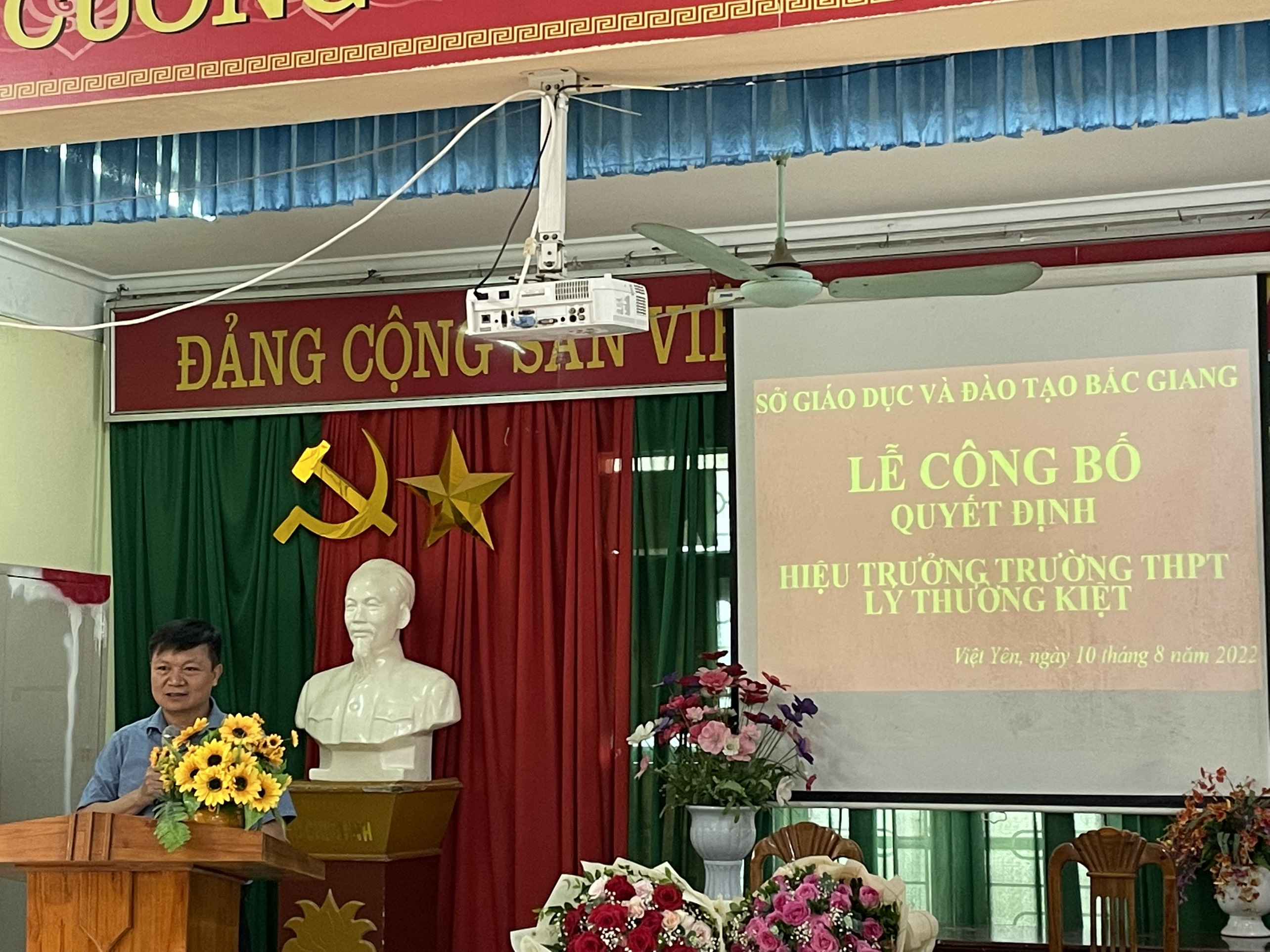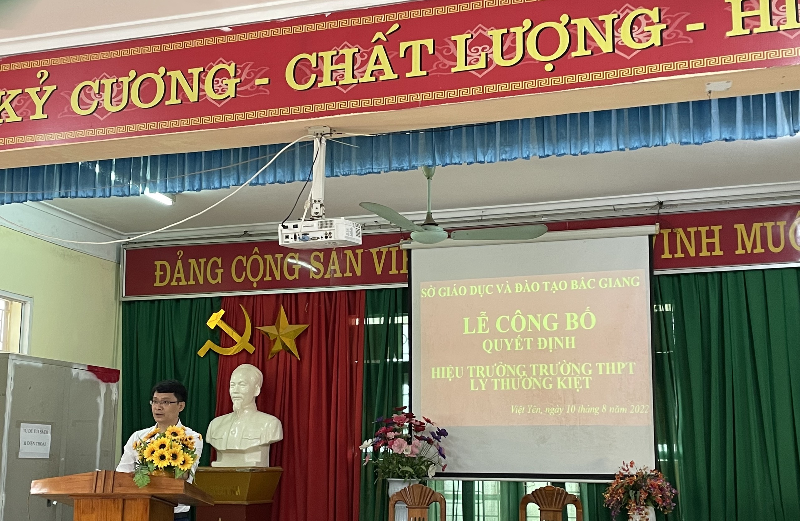 Tại buổi lễ đồng chí Trần Văn Sơn, phó Trưởng phòng tổ chức Sở GD&ĐT Bắc Giang công bố quyết định Quyết định của Sở GD&ĐT Bắc Giang về việc bổ nhiệm đồng chí Nguyễn Hồng Phúc giữ chức Hiệu trưởng Trường THPT Lý Thường Kiệt. Theo đó, đồng chí Nguyễn Hồng Phúc sẽ chính thức đảm nhiệm chức vụ kể từ ngày 16/8/2022 (nhiệm kỳ 2022-2027) thay cho đồng chí Nguyễn Danh Bắc hết nhiệm kỳ.