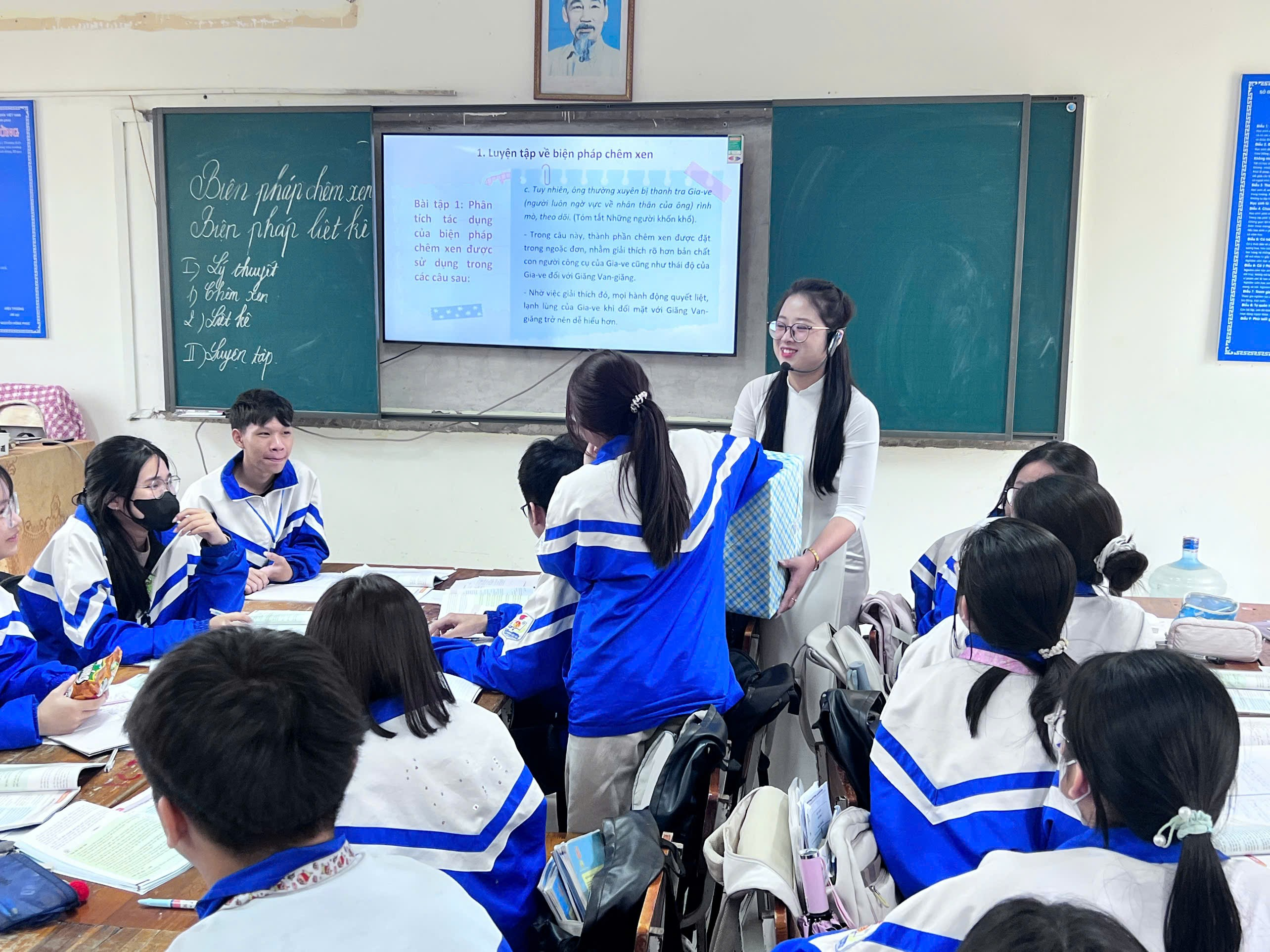 Tiết dạy thứ nhất do cô giáo Nguyễn Thị Linh Chi, một giáo viên trẻ đầy nhiệt huyết, thực hiện tại lớp 10A2 với bài học “Thực hành tiếng Việt: Phép tu từ liệt kê, chêm xen”. Trong giờ học, cô đã vận dụng linh hoạt nhiều phương pháp dạy học tích cực, kết hợp hình thức dạy học trực tiếp trên lớp với việc khai thác các công cụ hỗ trợ học tập trực tuyến thông qua hệ thống K12Online. Nhờ đó, giáo viên có thể giao nhiệm vụ học tập, kiểm tra kết quả và tăng cường sự tương tác giữa học sinh trong quá trình học tập.