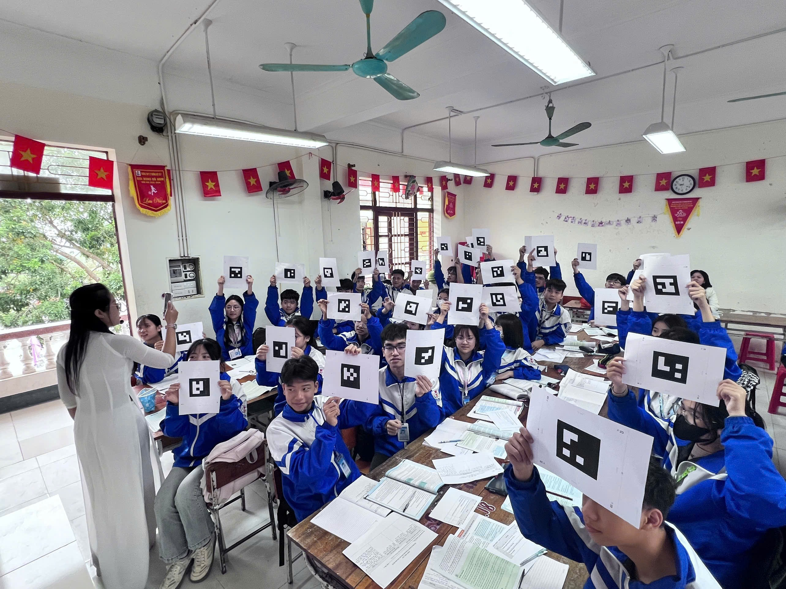 Các nhiệm vụ học tập được thiết kế đa dạng, tạo điều kiện để học sinh chủ động khám phá kiến thức, trao đổi ý tưởng và vận dụng nội dung bài học vào thực tiễn ngôn ngữ. Một điểm nhấn thú vị của tiết học là trò chơi “Quizizz giấy” do cô thiết kế và tổ chức ngay tại lớp. Hoạt động này tạo nên không khí thi đua học tập sôi nổi, thu hút học sinh tham gia tích cực, vừa giúp các em củng cố kiến thức bài học vừa phát huy khả năng phản xạ và làm việc nhóm. Nhờ cách tổ chức sáng tạo và gần gũi, lớp học trở nên sinh động, học sinh hào hứng tham gia vào từng nhiệm vụ.
