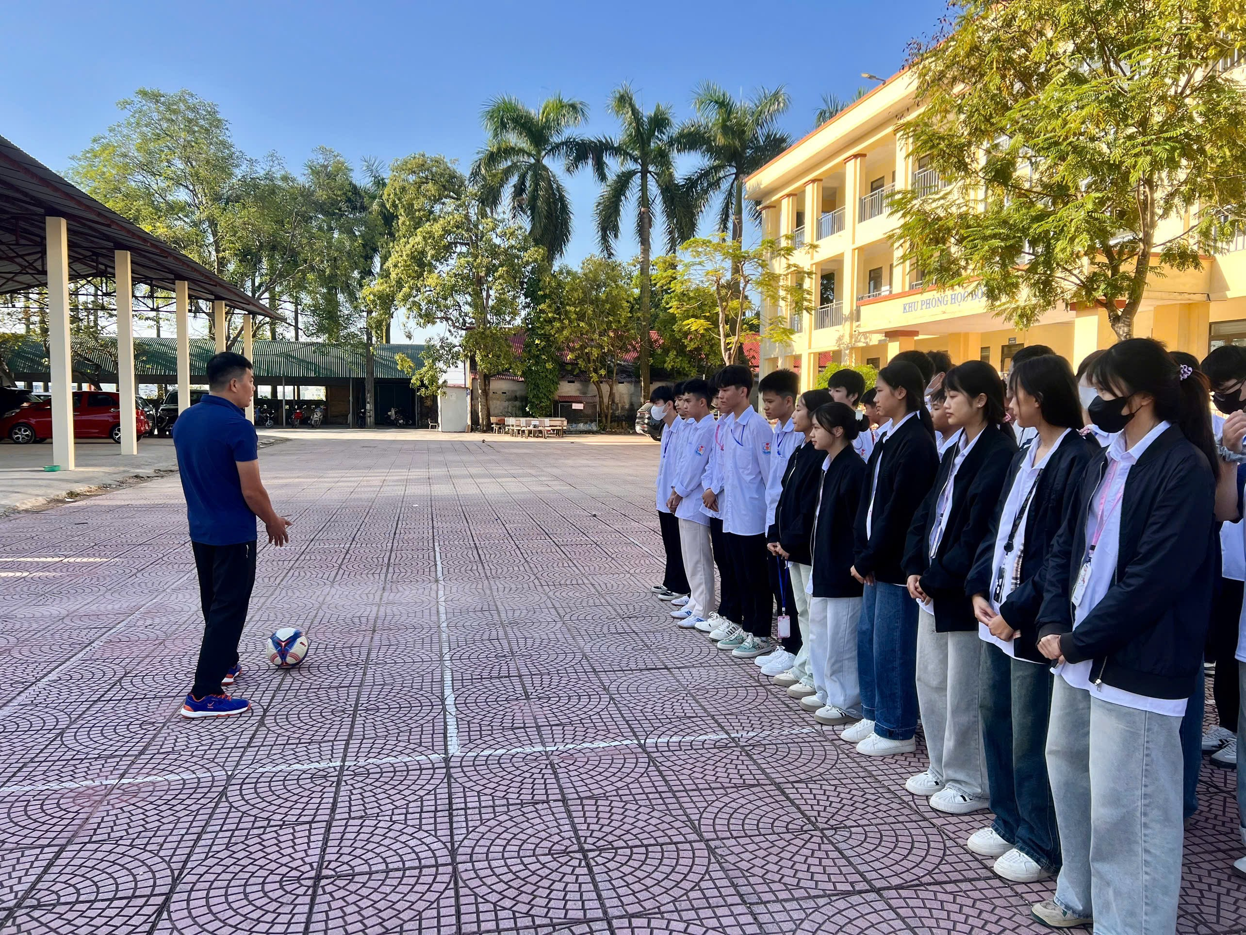 Theo lịch sinh hoạt chuyên môn của tổ GDTC-GDQPAN, vào sáng thứ Năm ngày 13/11/2025 mở đầu là tiết hội giảng thứ nhất, với môn học Giáo dục thể chất , lớp10a3 bằng bài giảng thực tế do thầy Nguyễn Văn Quân thực hiện với nội dung “ Kĩ thuật đá bóng bằng lòng bàn chân”.
