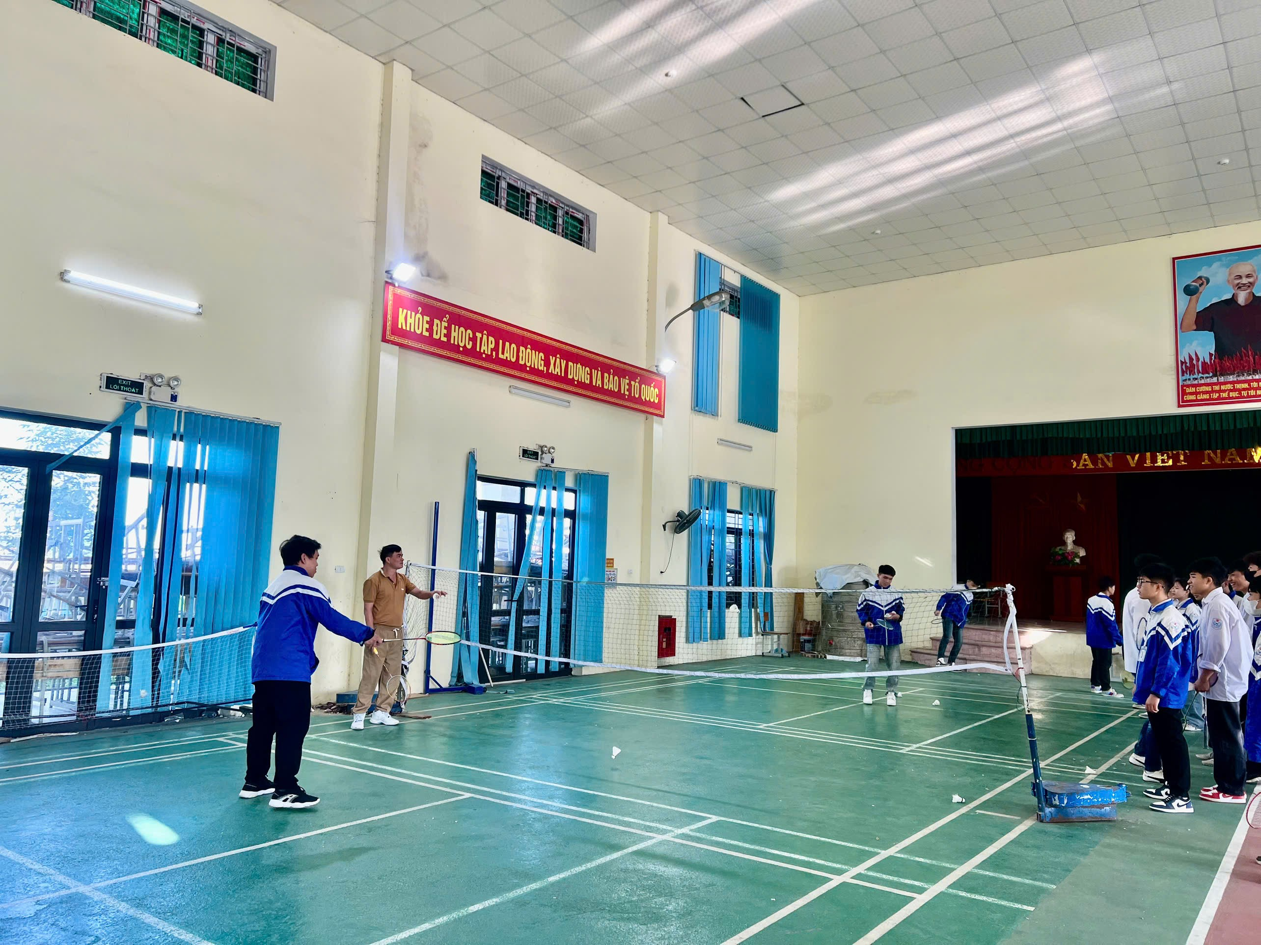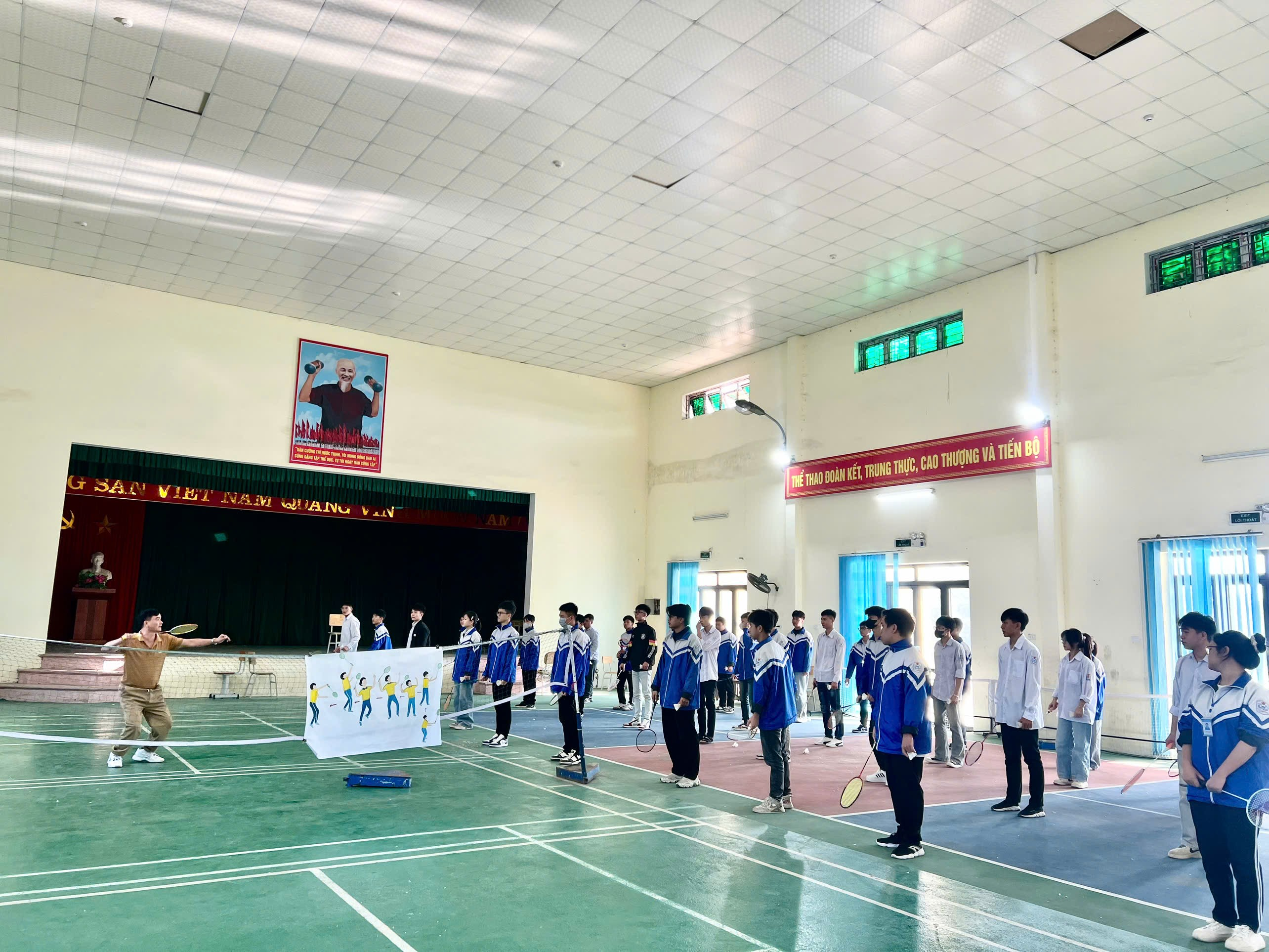 Tiết hội giảng thứ hai, với môn học Giáo dục Thể chất 12a2 do thầy giáo Chu Bá Vương thực hiện trên lớp 12A2 tại sân thực hành với nội dung “Kĩ thuật di chuyển lùi bật nhảy đánh cầu cao thận tay”.