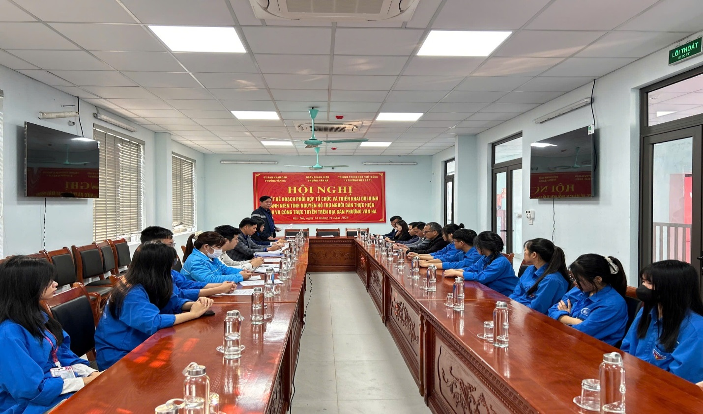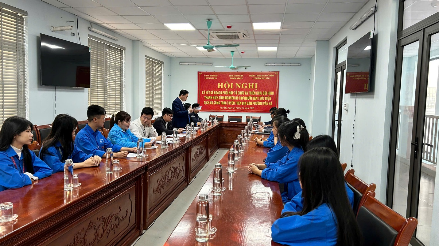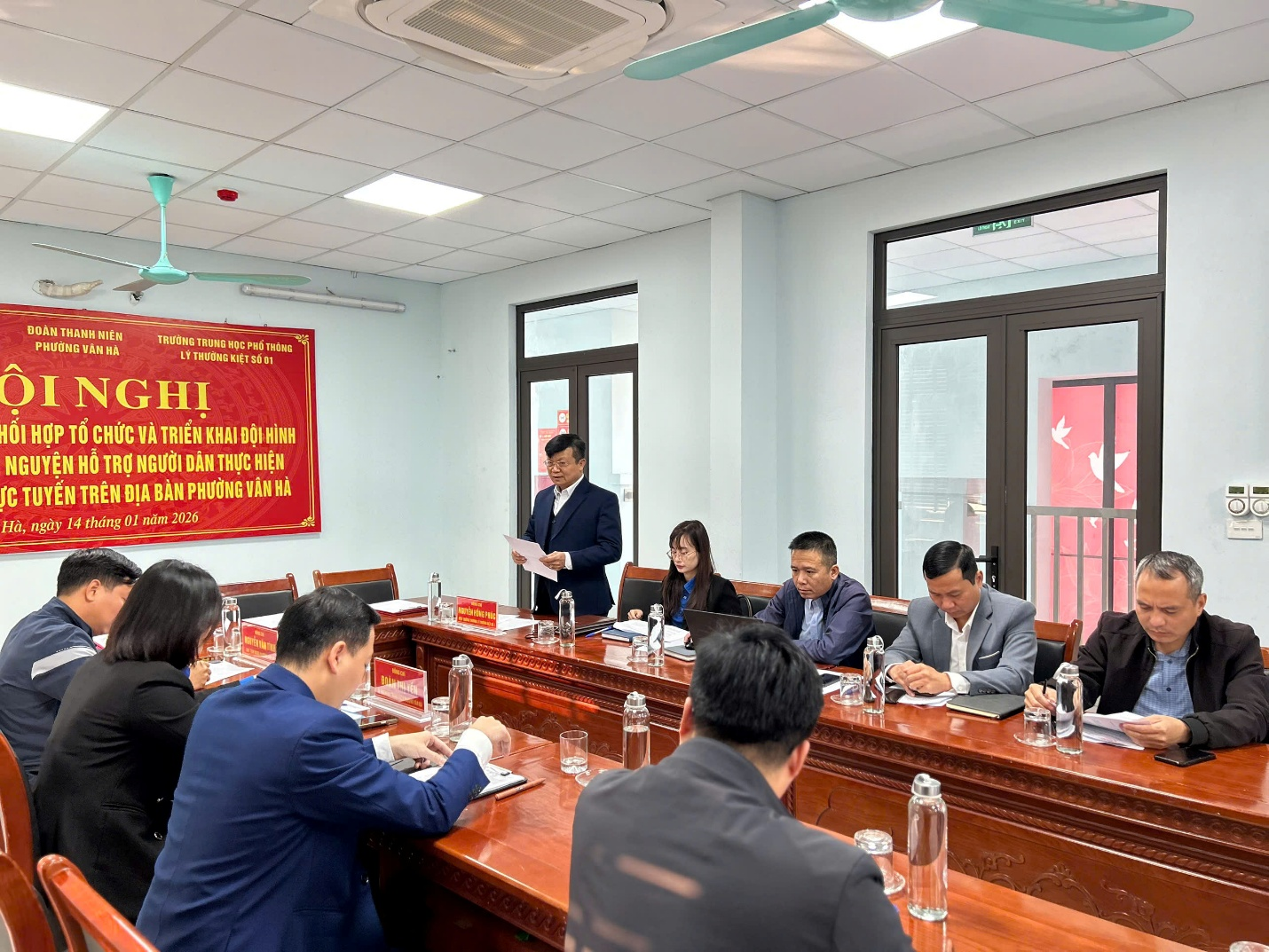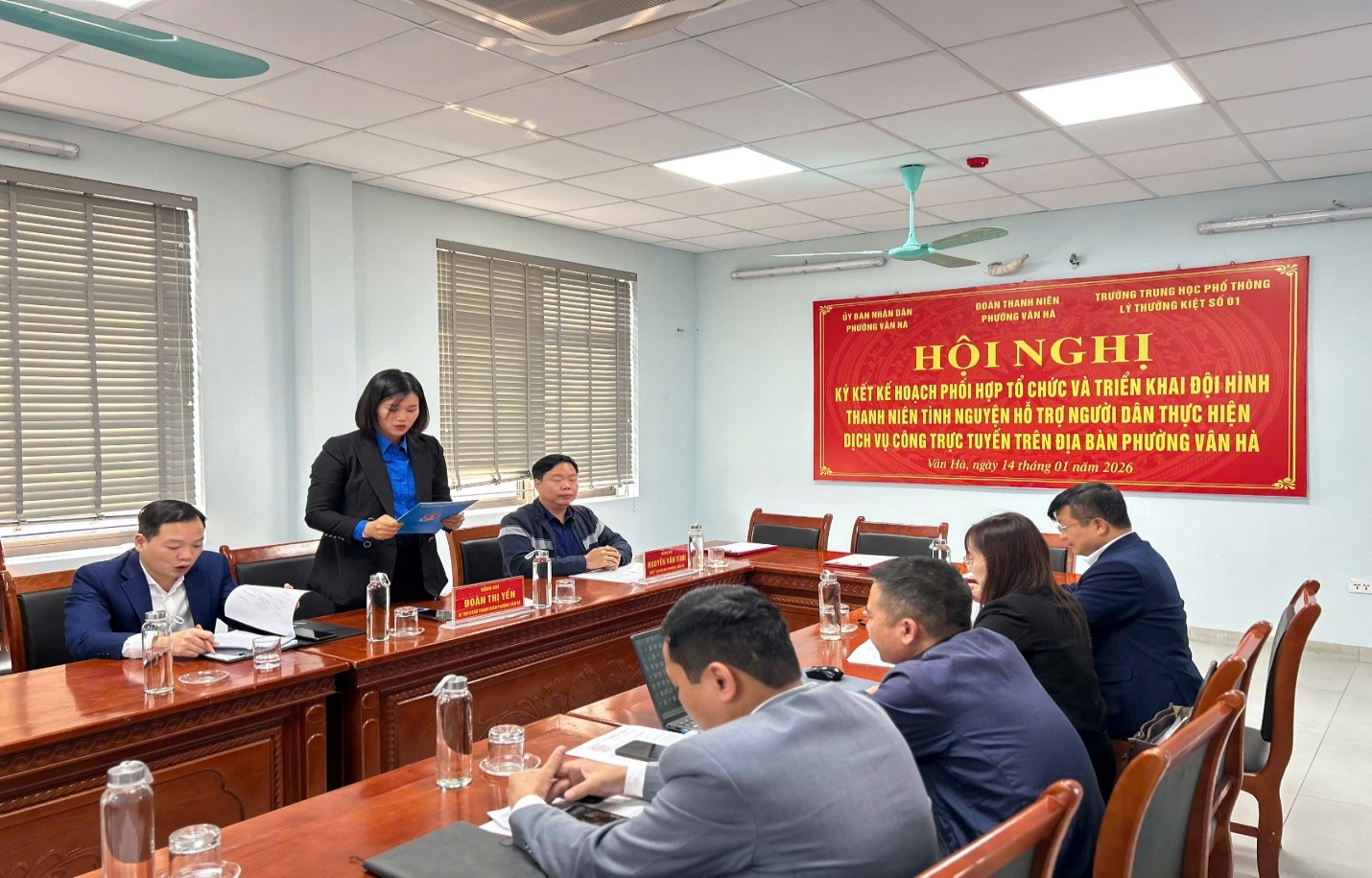 Căn cứ Kế hoạch số 13/KH-UBND ngày 30/8/2025 của UBND phường Vân Hà về thực hiện Nghị quyết số 71/NQ-CP ngày 01/4/2025 của Chính phủ và Kế hoạch số 07-KH/TU ngày 25/7/2025 của Ban Thường vụ Tỉnh ủy về thực hiện Nghị quyết số 57-NQ/TW ngày 22/12/2025 của Bộ Chính trị về đột phá phát triển khoa học, công nghệ, đổi mới sáng tạo và chuyển đổi số quốc gia, Căn cứ Nghị định số 118/2025/NĐ-CP ngày 09/6/2026 của Chính phủ về việc thực hiện thủ tục hành chính theo cơ chế một cửa, một cửa liên thông tại Bộ phận Một cửa và Cổng Dịch vụ công quốc gia; Căn cứ Quyết định số 05/QĐ-UBND ngày 18/7/2025 của UBND phường về việc ban hành Quy chế tổ chức hoạt động của Trung tâm Phục vụ hành chính công phường Vân Hà; nhằm đẩy mạnh việc triển khai dịch vụ công trực tuyến; tạo điều kiện thuận lợi cho người dân tiếp cận, sử dụng các dịch vụ số của cơ quan nhà nước, phát huy vai trò xung kích, tình nguyện của đoàn viên, thanh niên trong cải cách hành chính và chuyển đổi số. Sáng ngày 14/01/2026, Trường THPT Lý Thường Kiệt số 1 tham dự Hội nghị Ký kết Kế hoạch phối hợp tổ chức và triển khai đội hình thanh niên tình nguyện hỗ trợ người dân thực hiện dịch vụ công trực tuyến trên địa bàn phường Vân Hà.