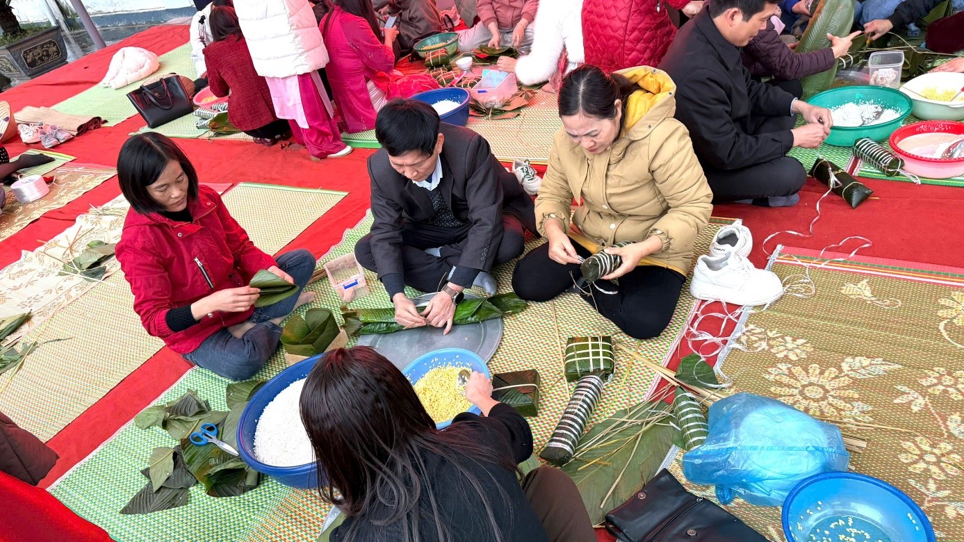 Thầy Trần Hữu Hiền- Phó hiệu trưởng nhà trường cùng tổ Văn phòng tham gia Hội thi gói bánh chưng