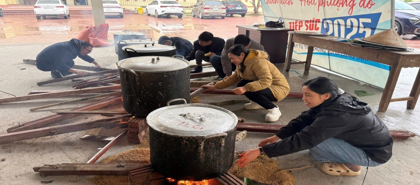 Hình ảnh các thầy cô bên nồi bánh chưng ấm áp, thắm tình