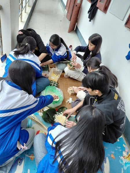 Đặc biệt, trong buổi ngoại khoá, các em học sinh sẽ bắt gặp hình ảnh các thầy giáo,cô giáo của mình khéo léo, tỉ mỉ bên chiếc bánh chưng xanh, bên bếp lửa bập bùng, ấm áp. Đó là những khoảnh khắc có ý nghĩa thiêng liêng để thầy và trò nhà trường cùng nhau lưu giữ, lan toả những giá trị truyền thống tốt đẹp. Bởi lẽ, như nhà giáo dục nổi tiếng William A.Warrd từng chia sẻ: “Người thầy trung bình chỉ biết nói, người thầy giỏi biết giải thích, người thầy xuất chúng biết minh họa, người thầy vĩ đại biết cách truyền cảm hứng”. Qua những hoạt động ý nghĩa này, thầy cô, nhà trường đã làm sáng ngời chân lí: những bài học sâu sắc có ý nghĩa bền lâu nhất, chạm được tới trái tim học trò nhất đôi khi lại xuất phát từ chính những hình ảnh giản dị, chân thành, tỉ mỉ của mỗi thầy cô.