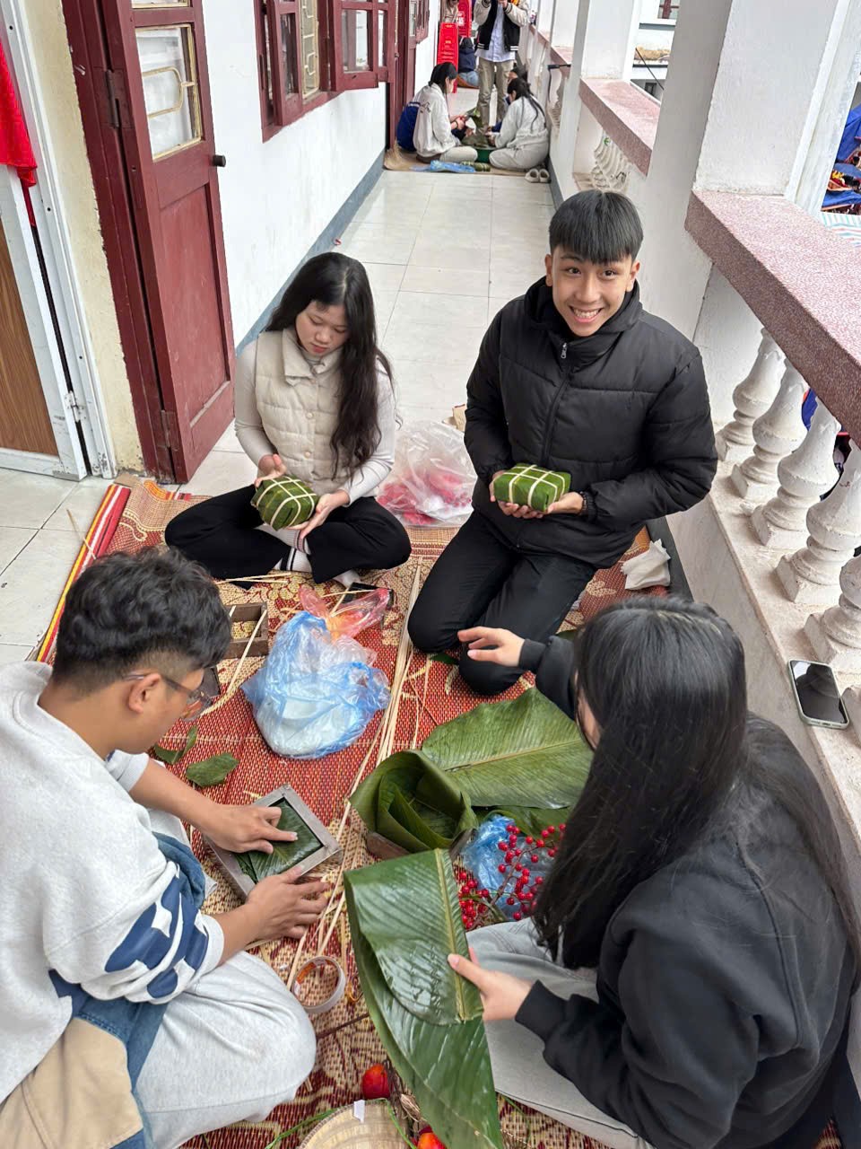 Tiếp sau đó, có lẽ là phần khiến các em học sinh háo hứng mong đợi nhất. Bởi các em học sinh được tự tay mình gói những chiếc bánh chưng và tham gia những trò chơi vui vẻ, ý nghĩa như đố vui toán học, nhảy bao bố, thi ném đĩa vào mâm, trưng bày tái hiện các gian hàng Tết, đây là năm thứ tám nhà trường tổ chức các hoạt động đón Tết cho học sinh. Với những hoạt động sôi nổi như vậy, các em học sinh đã có cơ hội được gắn kết, tìm hiểu, khám phá những năng lực mới của bản thân. Từ đó, các em sẽ thêm tự hào, biết trân trọng và gìn giữ những nét cổ truyền với những giá trị văn hoá độc đáo của dân tộc. Việc tham gia các hoạt động cũng giúp học sinh nhà trường năng động hơn, sáng tạo hơn và hoà nhịp nhanh chóng với những bước phát triển mới của xã hội hiện đại.