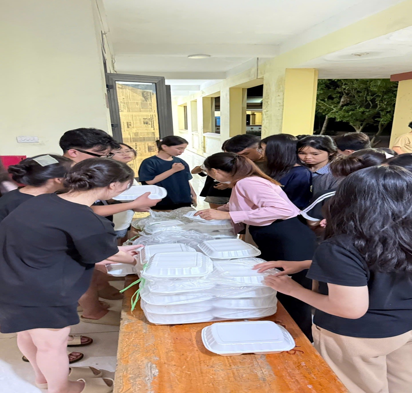 Ngay trong tối 01/10/2025, hình ảnh Cô Lê Thị Thái - Phó Hiệu trưởng cùng các thầy cô đứng phát từng suất ăn nóng hổi cho học sinh đã lan tỏa hơi ấm tình người. Các em không chỉ được đảm bảo bữa ăn mà còn được động viên, chia sẻ.