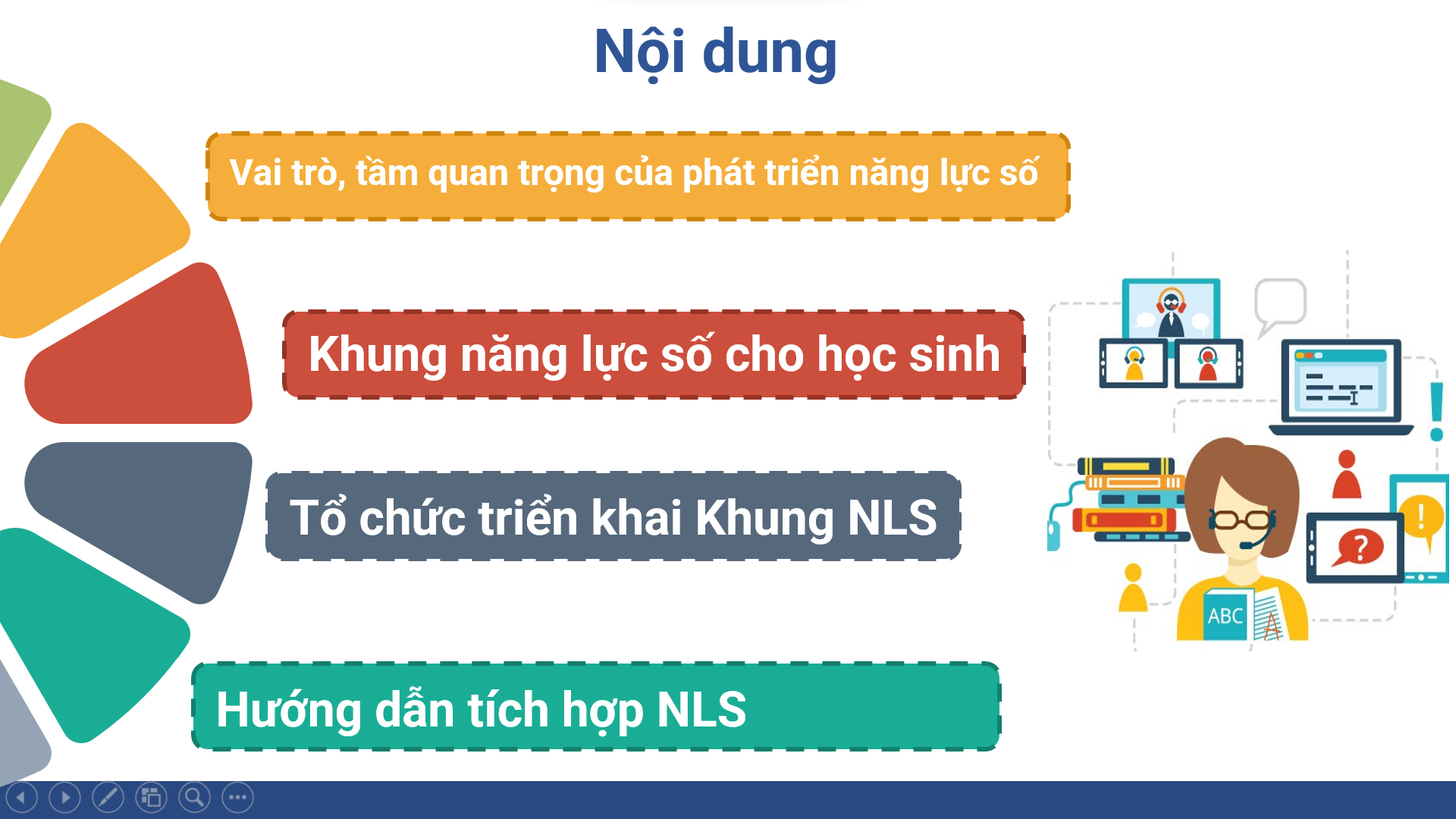 Giáo viên được hướng dẫn cách tích hợp phát triển năng lực số trong dạy học và kiểm tra, đánh giá, thông qua việc lồng ghép các chỉ báo năng lực số vào kế hoạch giáo dục của nhà trường, kế hoạch giáo dục môn học và kế hoạch bài dạy; thiết kế các hoạt động học tập có sử dụng công cụ số; xây dựng các sản phẩm học tập số làm căn cứ đánh giá năng lực của học sinh.
