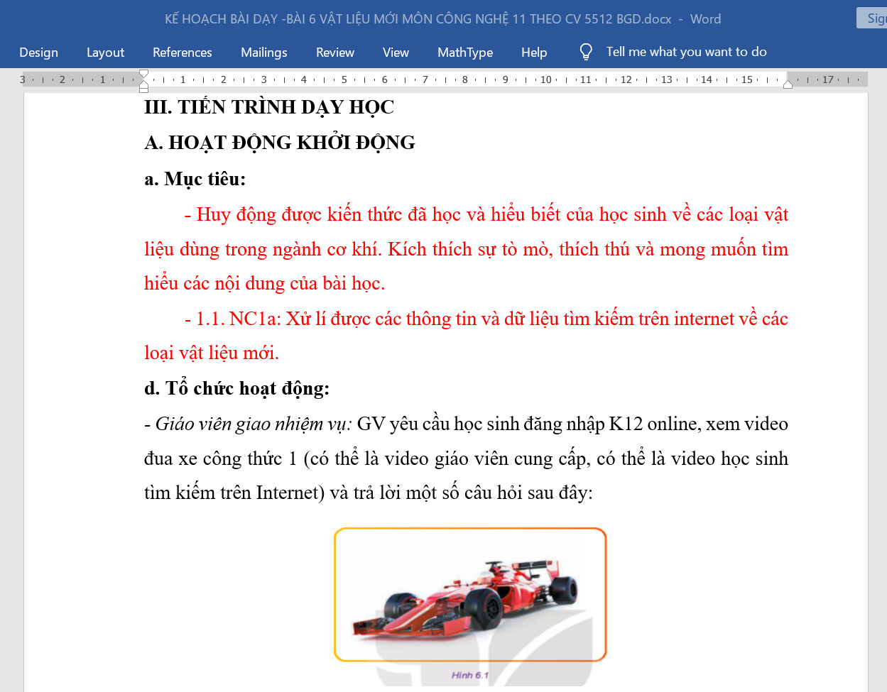 Sản phẩm tập huấn là kế hoạch bài dạy bài 6 môn Công nghệ 11