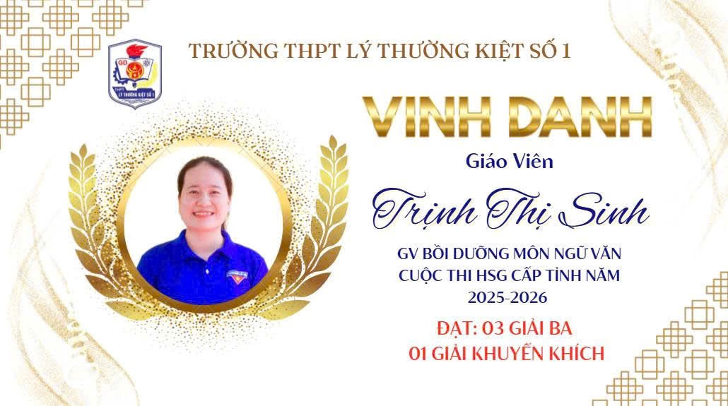 TRƯỜNG THPT LÝ THƯỜNG KIỆT SỐ 1 VINH DANH CÁC THẦY CÔ GIÁO BỒI DƯỠNG ĐỘI TUYỂN HỌC SINH GIỎI CẤP TỈNH NĂM HỌC 2025 – 2026