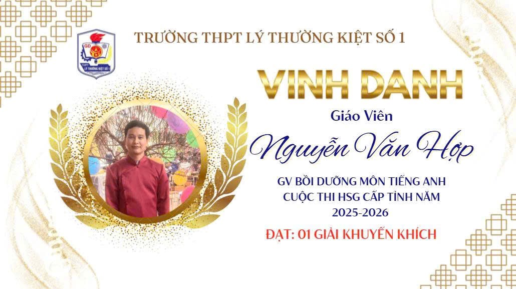 Ở môn Tiếng Anh, Thầy Nguyễn Văn Hợp luôn chủ động đổi mới phương pháp, chú trọng phát triển toàn diện các kỹ năng ngoại ngữ cho học sinh. Trong công tác bồi dưỡng, thầy kiên trì rèn luyện từ nền tảng đến nâng cao cho đội tuyển. Không chỉ dạy kiến thức, thầy còn tạo môi trường học tập tích cực, tự tin cho học sinh. Kết quả đạt 01 giải Khuyến khích cấp tỉnh là sự ghi nhận xứng đáng cho tâm huyết của thầy. Qua đó góp phần nâng cao chất lượng dạy và học môn Tiếng Anh trong nhà trường.