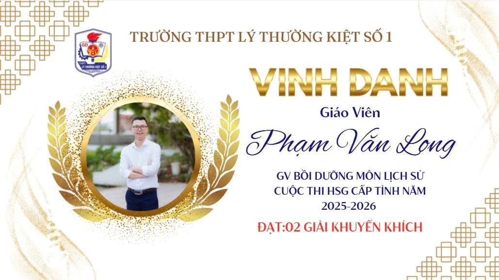 Thầy Phạm Văn Long là giáo viên giàu nhiệt huyết, luôn truyền cho học sinh niềm yêu thích lịch sử dân tộc. Trong quá trình bồi dưỡng, thầy chú trọng rèn tư duy hệ thống, khả năng phân tích và lập luận cho học sinh. Sự tận tâm và phương pháp linh hoạt của thầy giúp các em học tập hiệu quả hơn. Kết quả đội tuyển đạt 02 giải Khuyến khích cấp tỉnh. Thành tích này thể hiện rõ sự cố gắng không ngừng của thầy và trò.