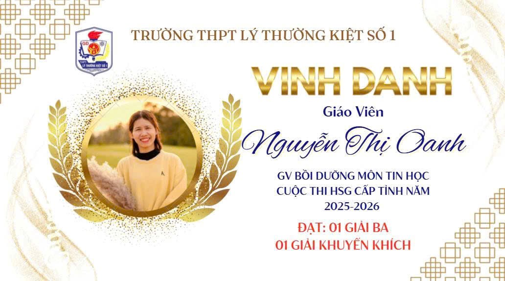 Ở môn Tin học, cô Nguyễn Thị Oanh là giáo viên nhiều kinh nghiệm, đặc biệt trong công tác bồi dưỡng học sinh giỏi. Cô chú trọng rèn luyện cho học sinh tư duy thuật toán, kỹ năng lập trình và khả năng vận dụng kiến thức vào giải quyết các bài toán thực tiễn. Với phương pháp hướng dẫn khoa học, sự kiên trì và theo sát từng giai đoạn ôn luyện, học sinh có sự tiến bộ rõ rệt về năng lực tư duy và kỹ năng viết code. Kết quả, đội tuyển đạt 01 giải Ba và 01 giải Khuyến khích cấp tỉnh, qua đó góp phần thúc đẩy niềm yêu thích và phong trào học tập môn Tin học trong nhà trường.