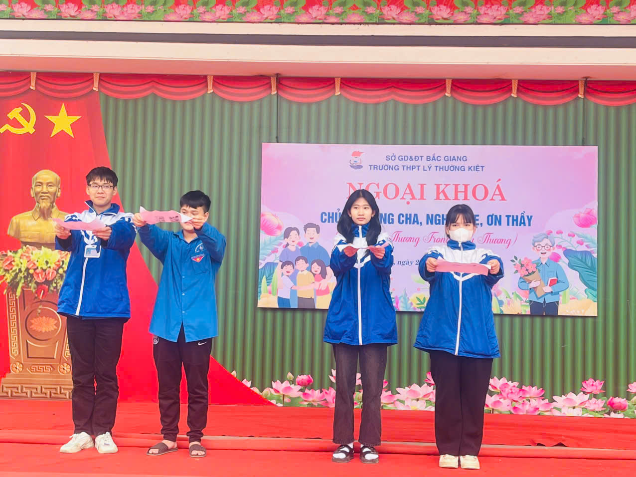 Giúp học sinh biết lắng nghe, chia sẻ, sống có trách nhiệm, biết yêu thương, biết ơn công lao của cha mẹ, thầy cô; Đáp ứng mục tiêu giáo dục toàn diện, giúp hình thành phẩm chất, năng lực cho học sinh theo yêu cầu cần đạt của chương trình giáo dục phổ thông 2018. Thúc đẩy những hoạt động mang tính xã hội, phát huy các nhân tố tích cực, hạn chế nhân tố tiêu cực, xây dựng môi trường trường học thân thiện, học sinh tích cực. Góp phần tích cực cho việc đổi mới phương pháp học tập của học sinh. Chiều ngày 29/3/2025 trường THPT Lý Thường Kiệt tổ chức chương trình Giáo dục kỹ năng sống với chủ đề Công cha, nghĩa mẹ, ơn thầy (Sống yêu thương trong yêu thương) cho toàn bộ học sinh Khối 10, khối 11. Qua chương trình các em HS nhận thức được tại sao phải Uống nước nhớ nguồn, phải nhớ ơn công lao của thầy cô, cha mẹ, nhận ra công lao của thầy cô, cha mẹ để biết đền đáp xứng đáng, hiểu được những hành vi lệch lạc để sửa chữa, hoàn thiện bản thân.